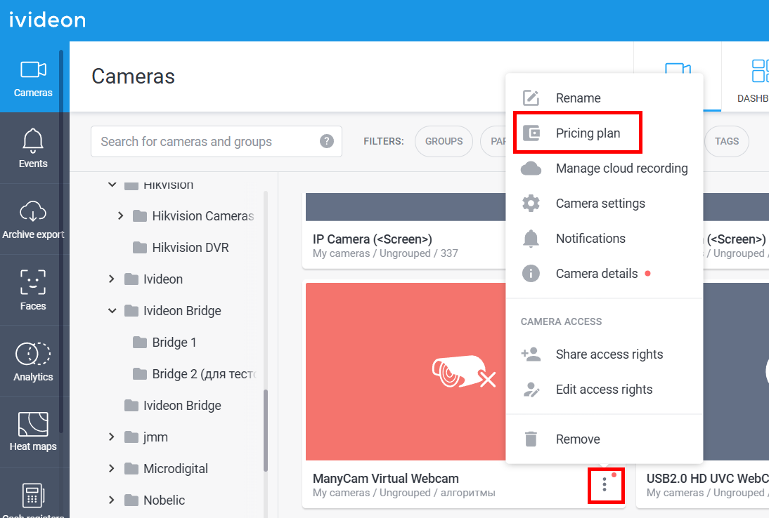 1. You can change a plan for a single camera or for several cameras at once: