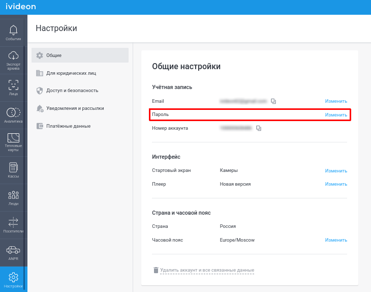 1. В личном кабинете перейдите в раздел Настройки - Общие. 2. Нажмите Изменить пароль. | ![]() |