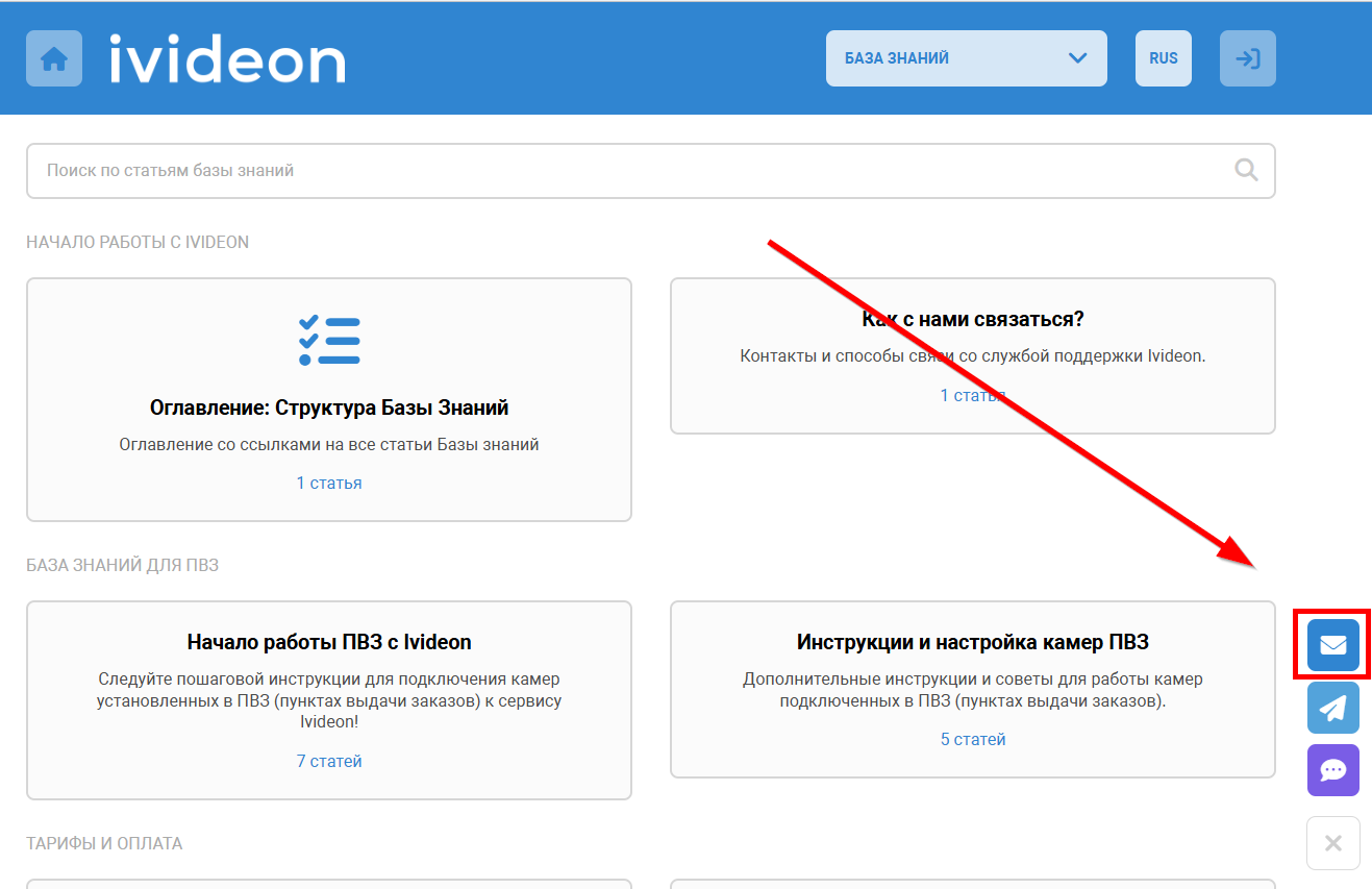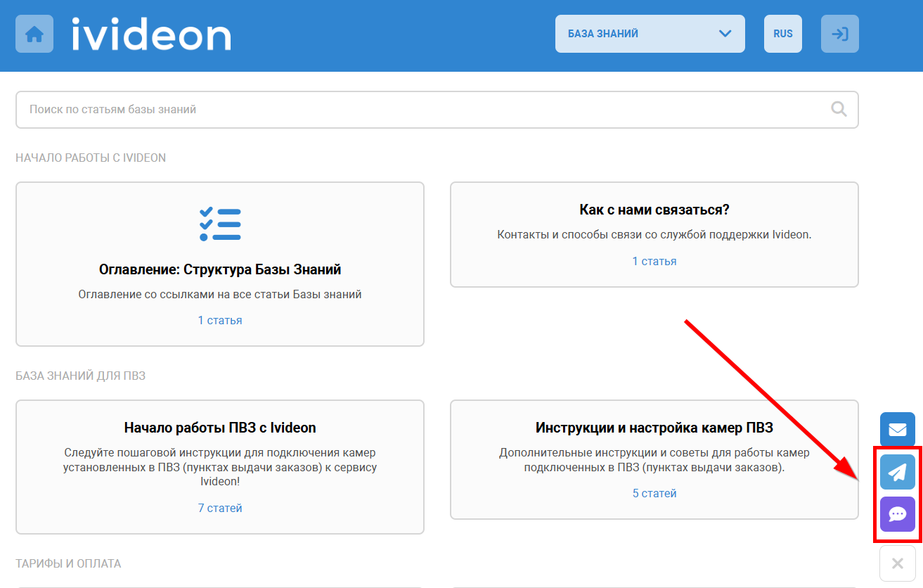 - Telegram - набрав в строке поиска ivideon_support или по имени пользователя @ivideon_help_bot.