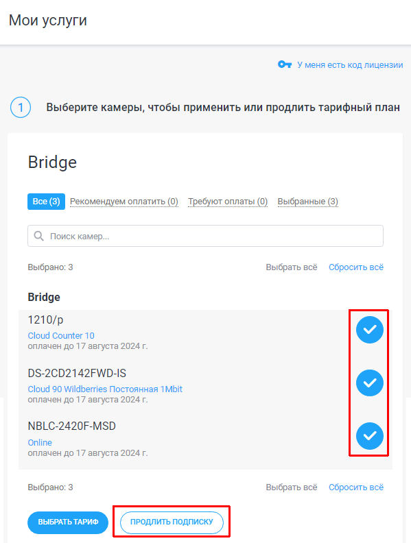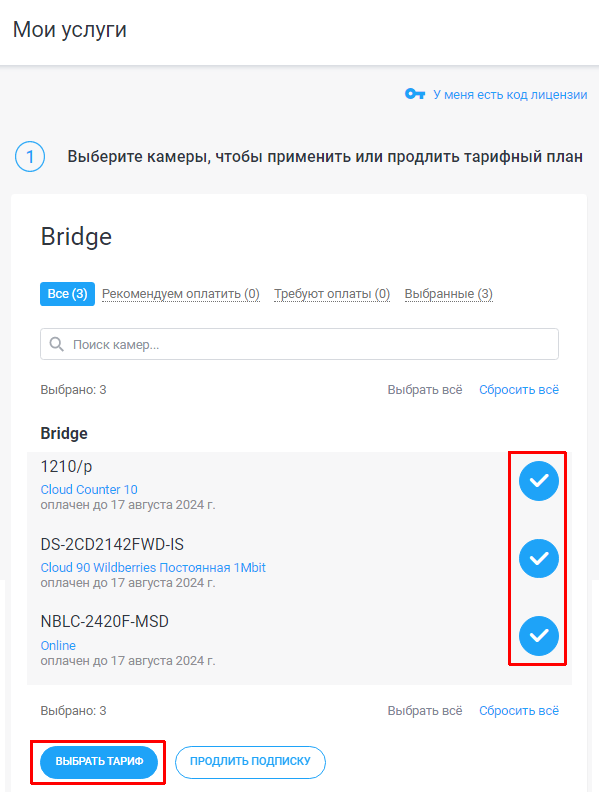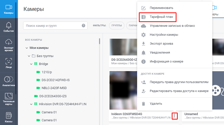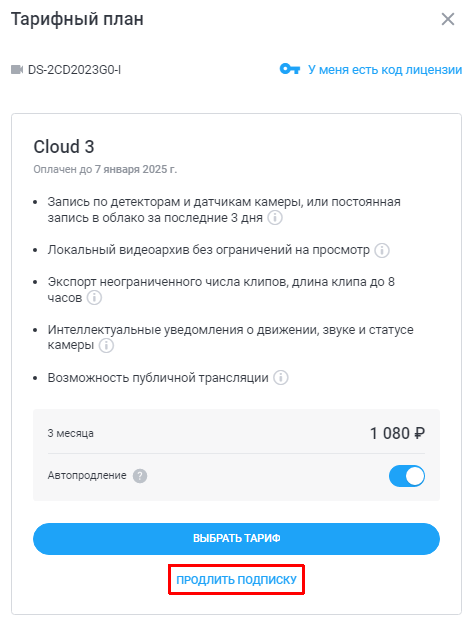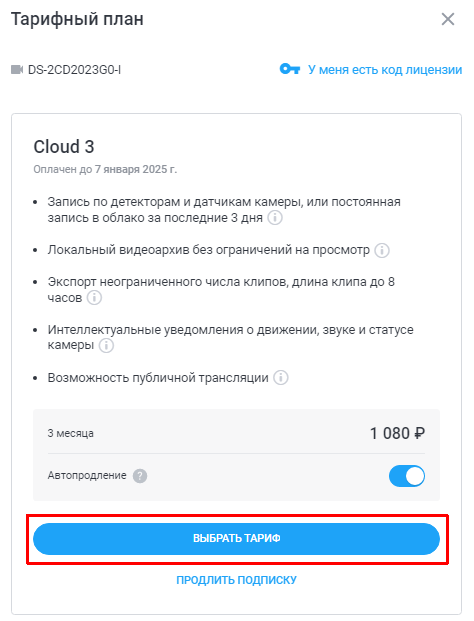 В этой инструкции рассказывается, как управлять тарифным планом камеры прямо из личного кабинета. Вы узнаете, как подключить новый тариф, продлить действующий или перейти на другой план — для одной или сразу нескольких камер.