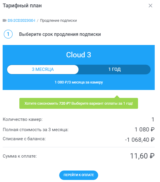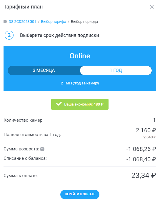 2. Выберите нужный срок продления подписки и нажмите Перейти к оплате. |
