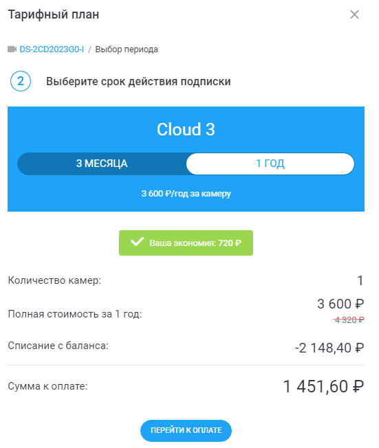 5. Выберите нужный срок действия подписки и нажмите Перейти к оплате. |